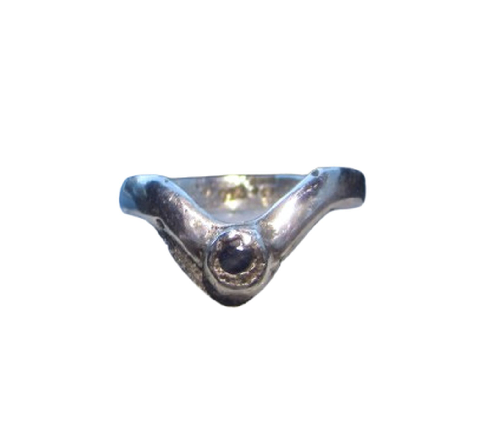 Sand cast solid 925 Silver Chevron Ring with a Natural Round Faceted Blue Sapphire cast in place.