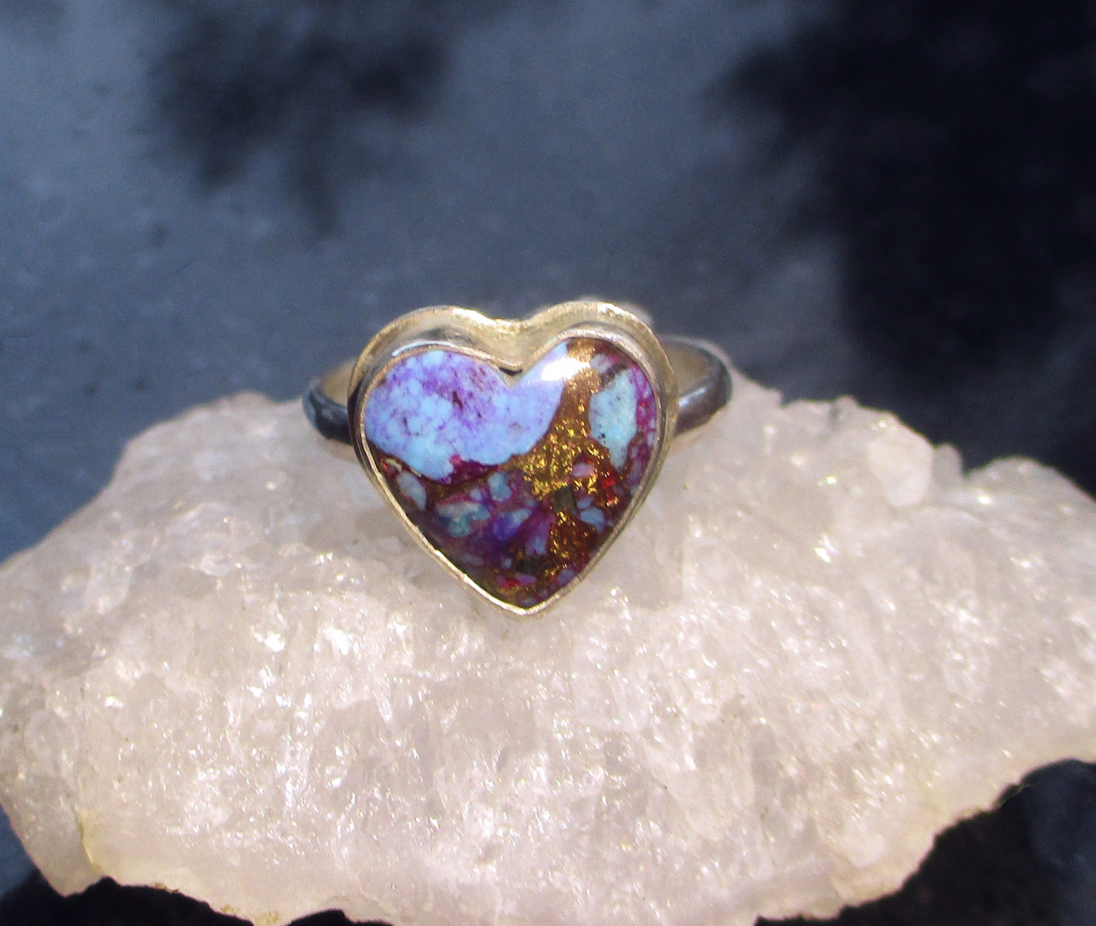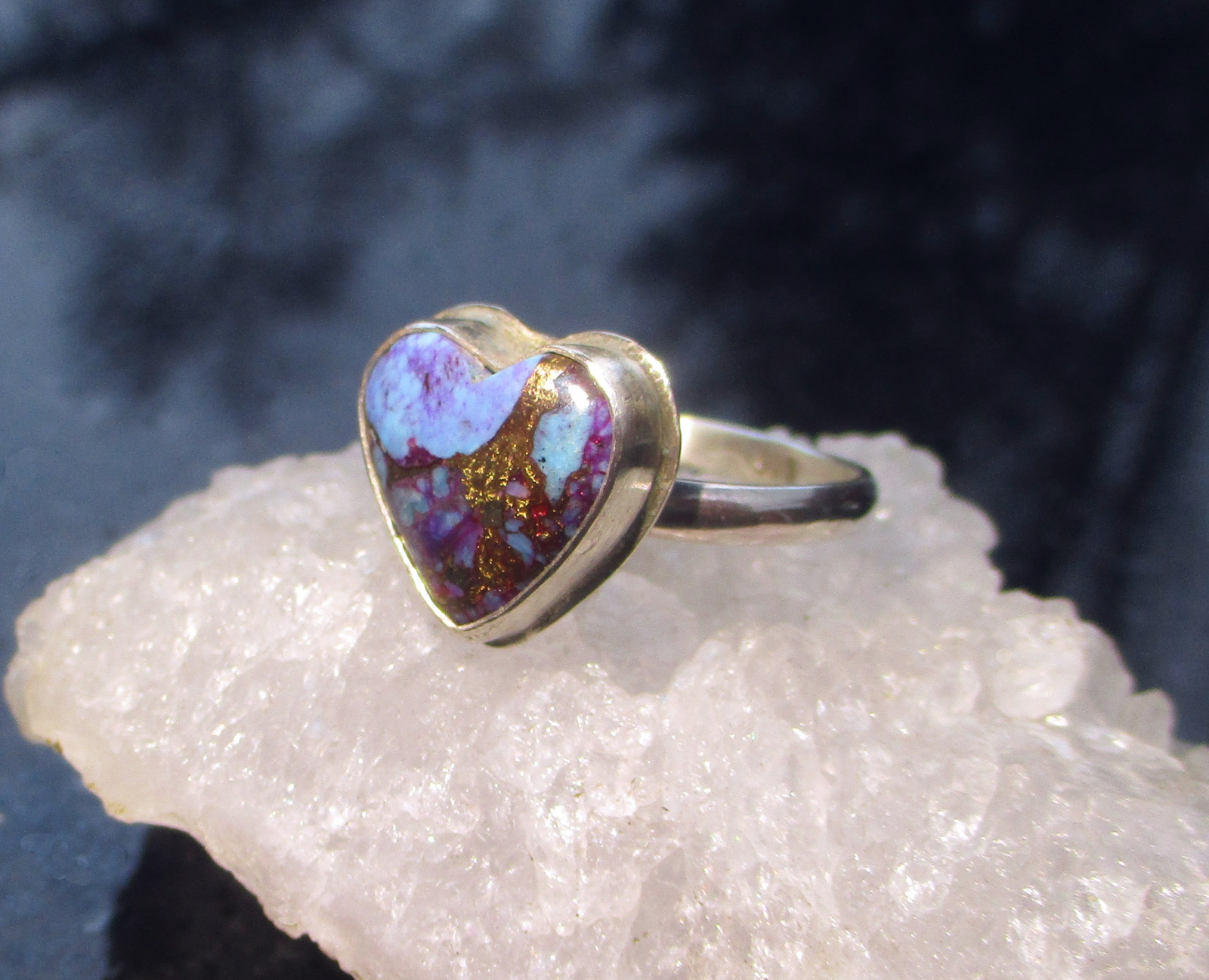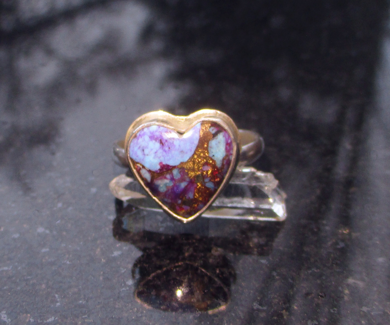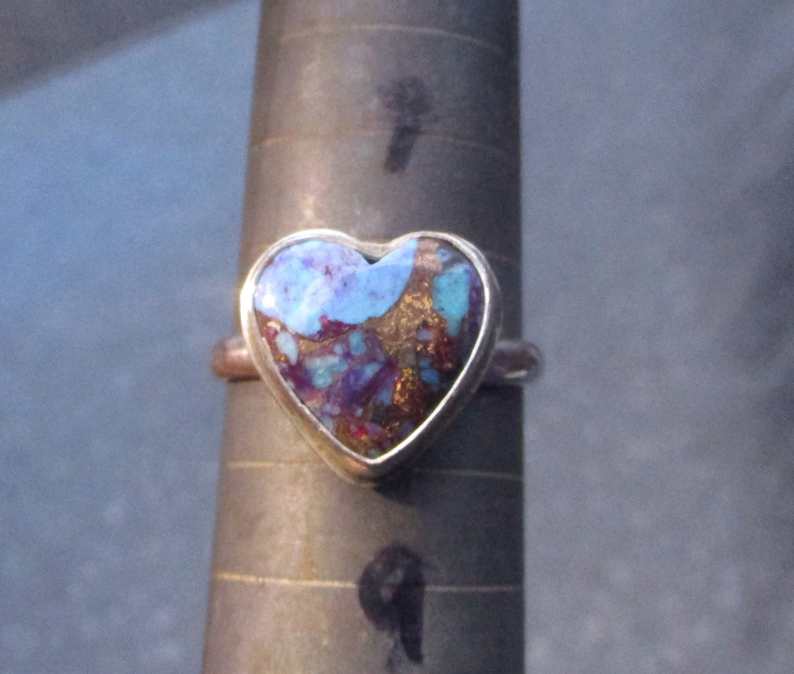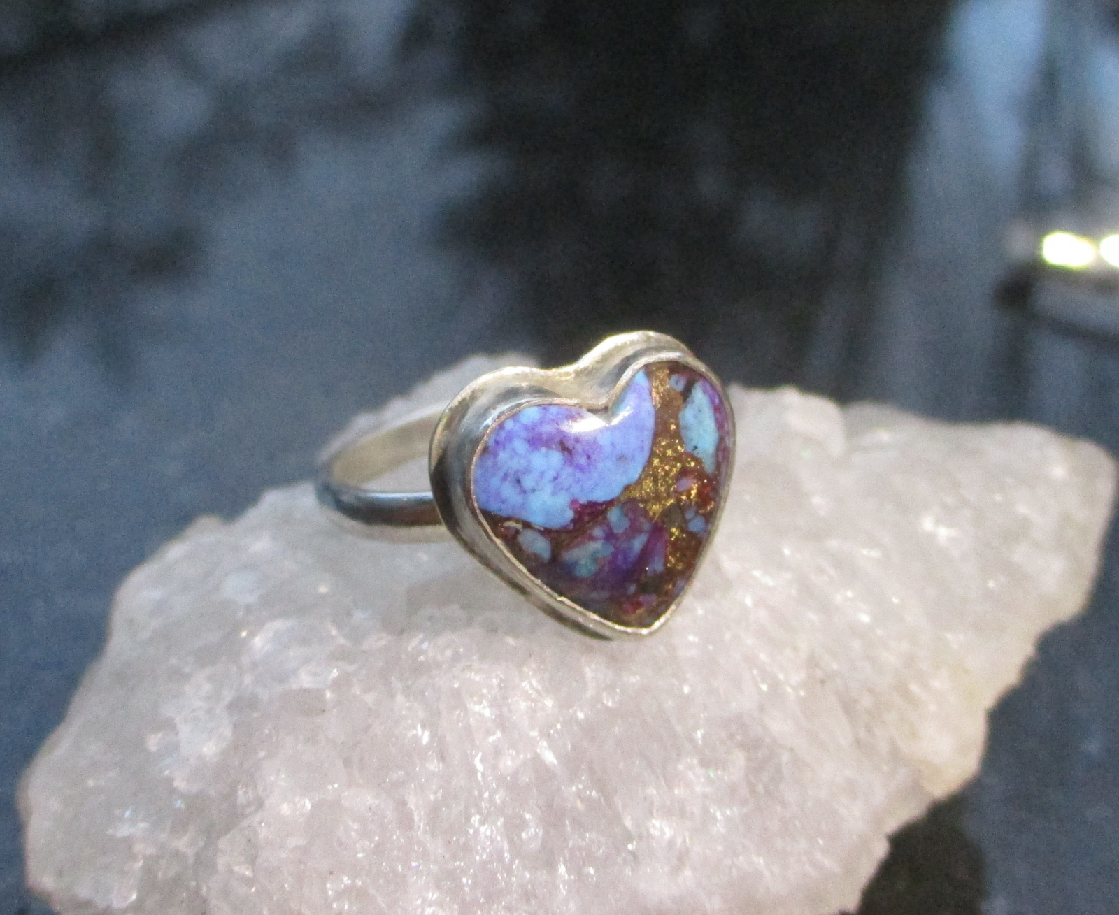* Made with a Heart shaped Purple and Blue Mojave Turquoise Matrix gemstone that has been bezel set on a half round band.