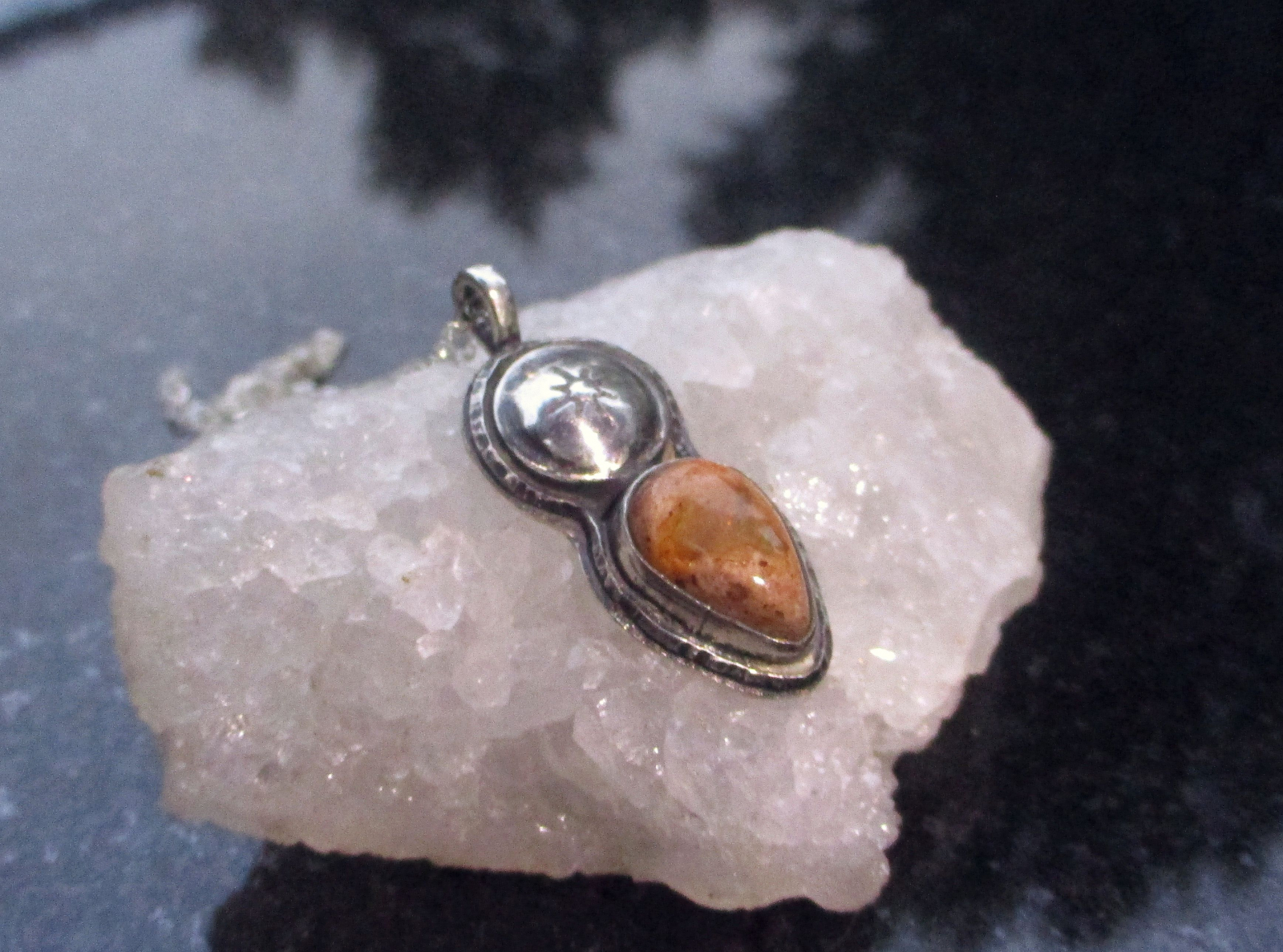 * Made with a teardrop shaped orange Cantera Opal bezel set with Silver Star pendant