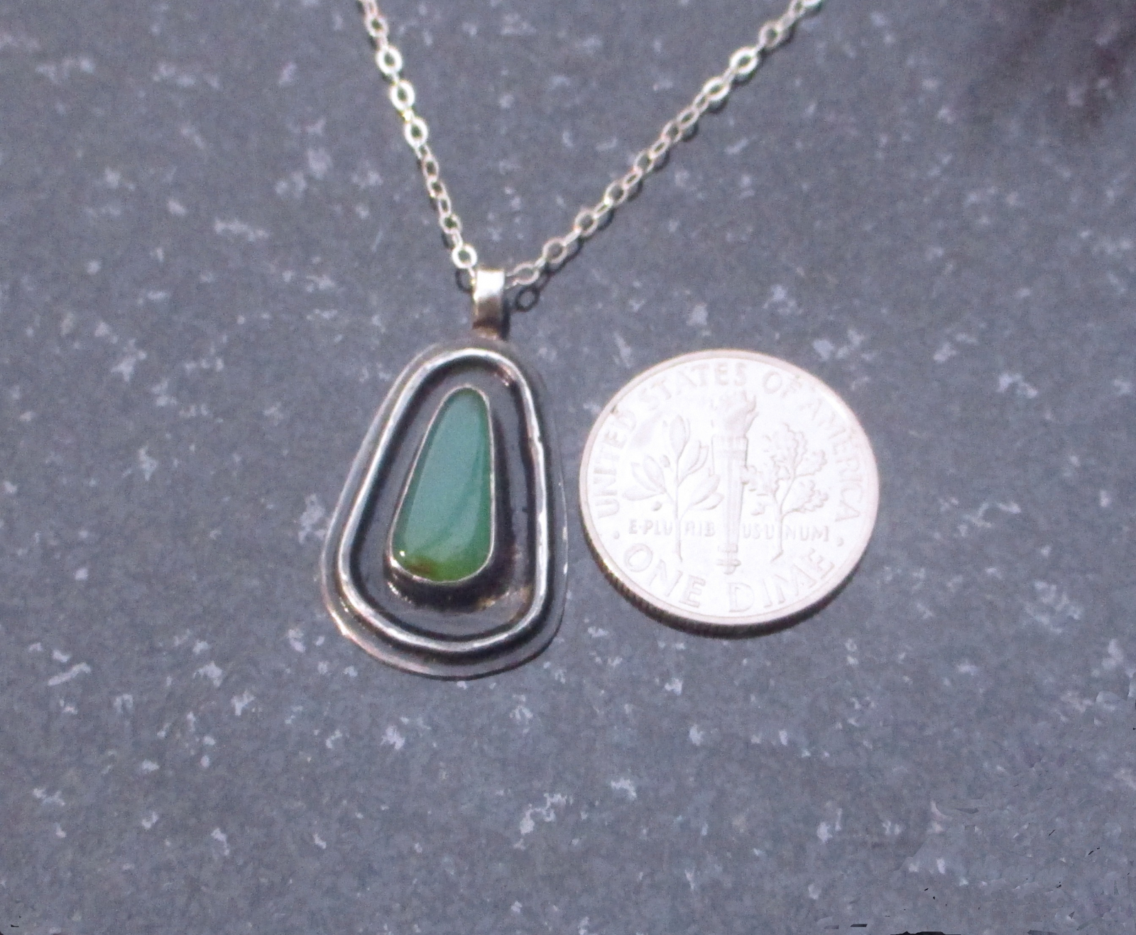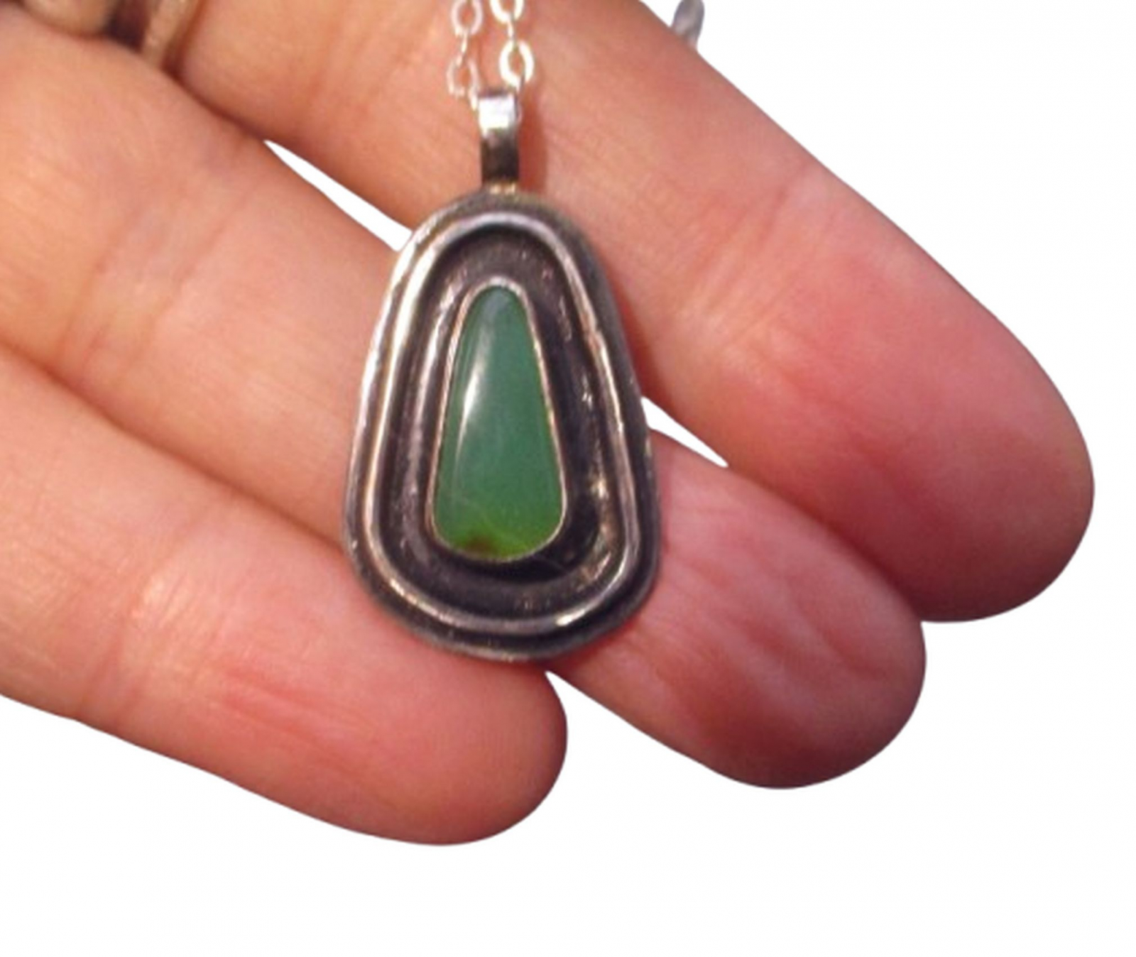 * Made with a triangle shaped Green Indonesian Opal Wood cabochon cut an polished in my shop-
