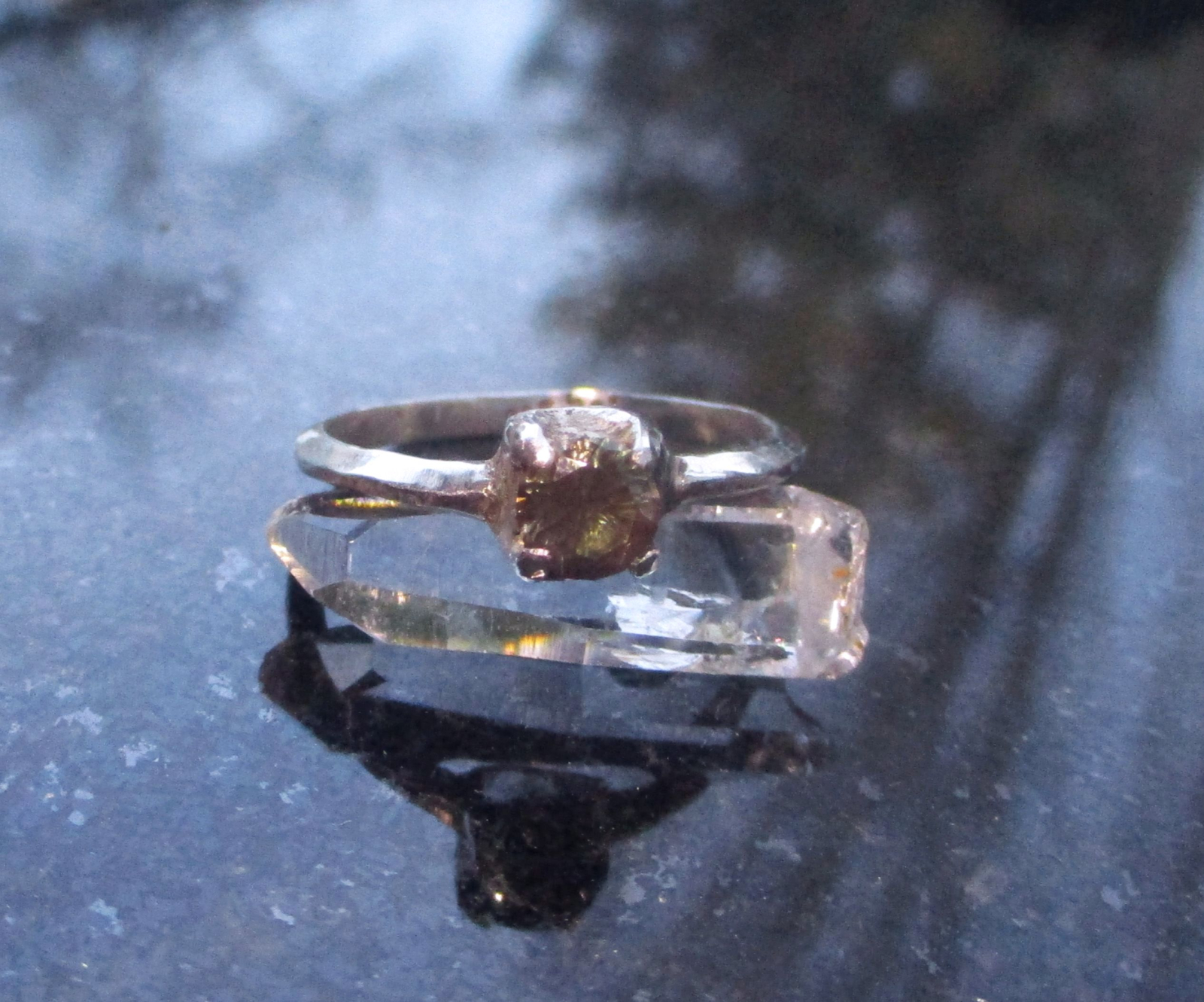 Handmade Oregon Sunstone Ring Sterling Silver Rings for Women Size 7.25 Molten Silver