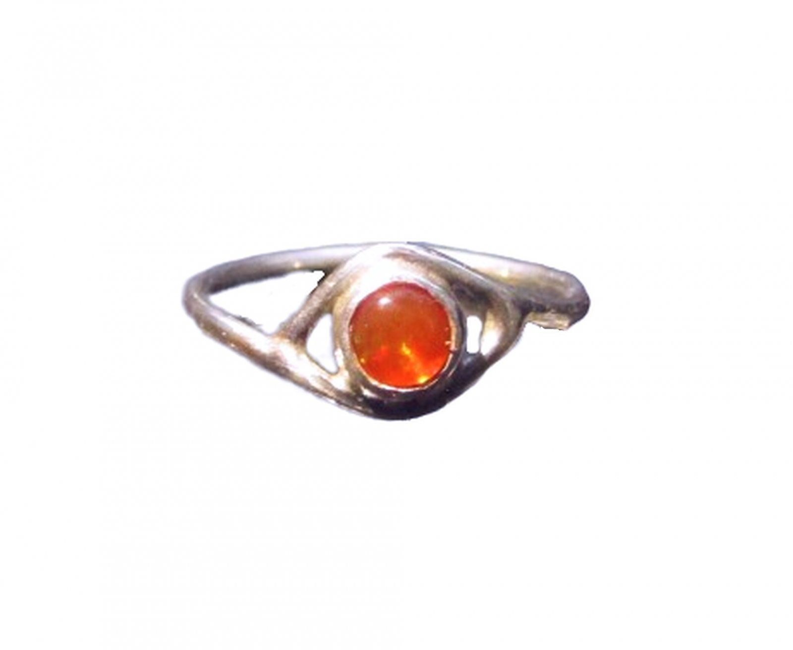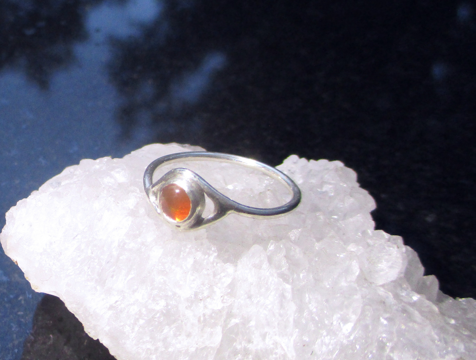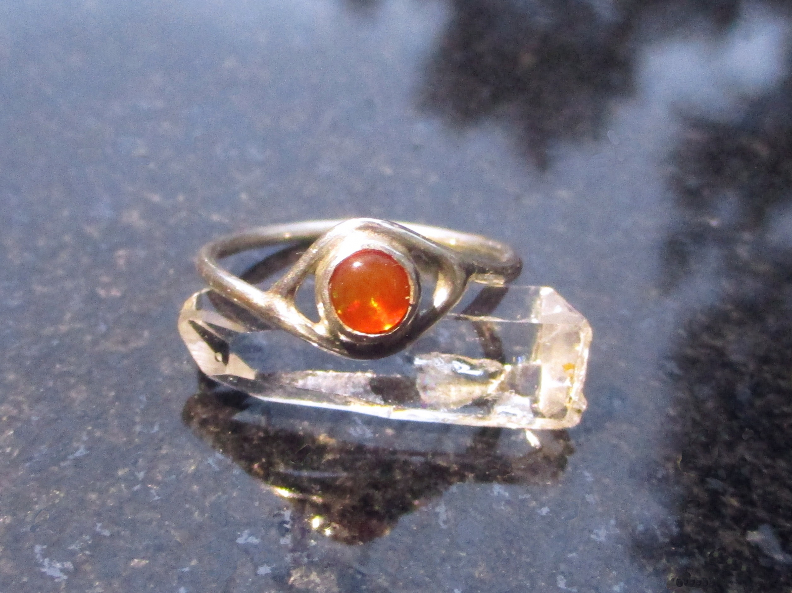 Handmade Fire Opal Silver Ring with a bright Orange-Red 5mm round opal.