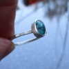 A handmade US size 8 turquoise silver stacking ring made with a small Tibetan Turquoise oval shaped cabochon and sterling silver. This stone is mostly blue-green..